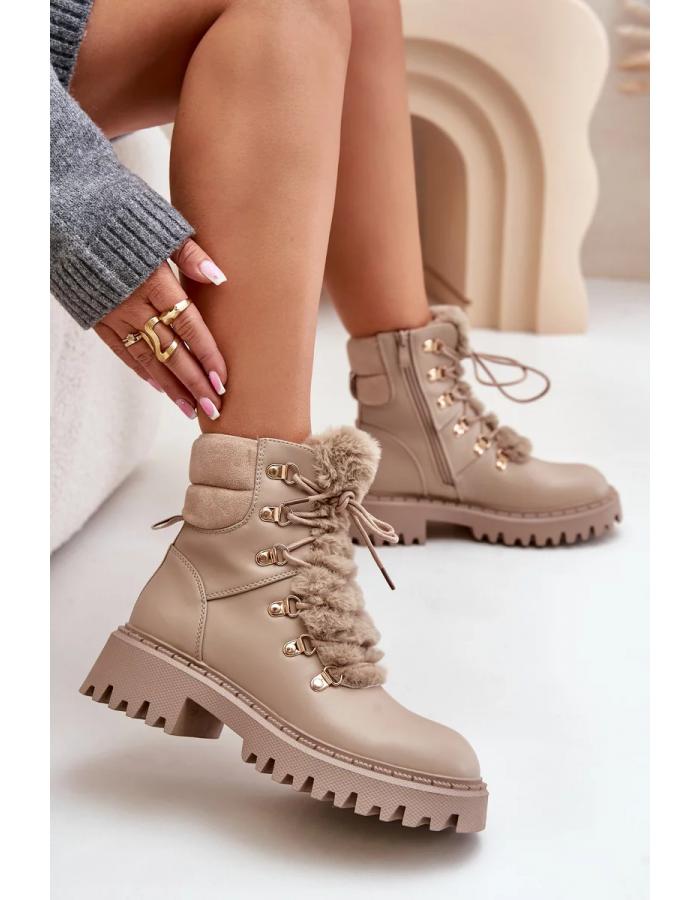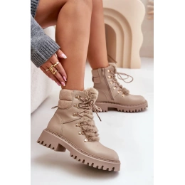 Zateplené kotníkové boty na zip z eko kůže béžové Willatta 38