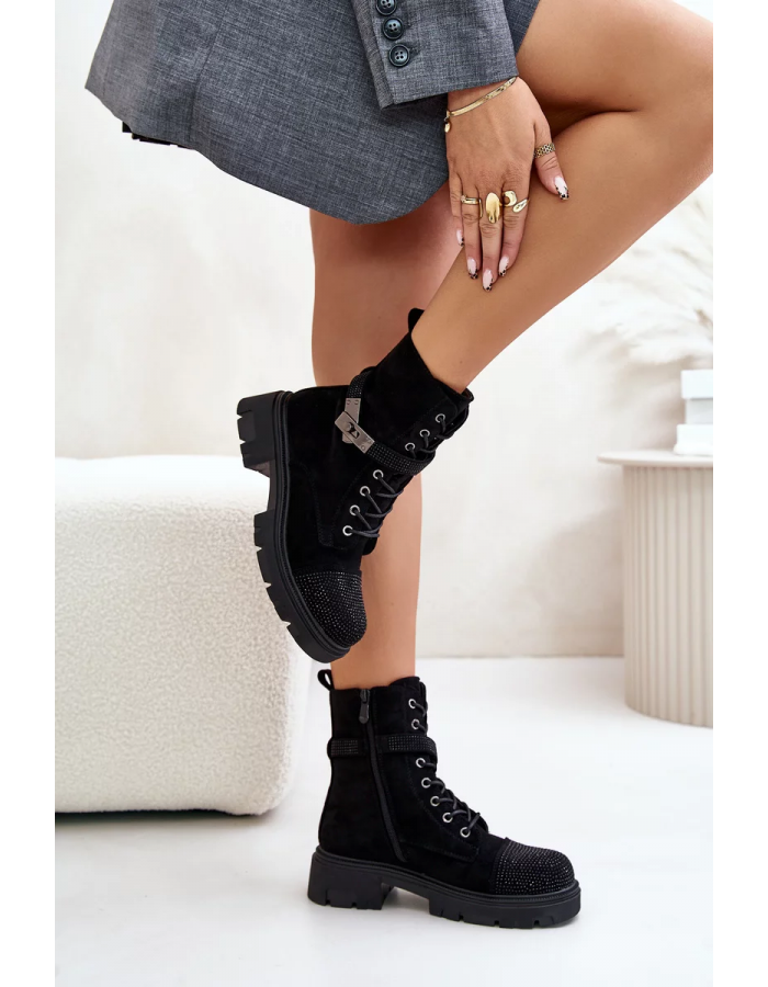 Osazené na plochém podpatku. Zapínané na zip a navíc šněrované. Zaoblené špičky. Zdobení na svršku dodává výjimečného půvabu. Prostředek zateplený obuvnickou vložkou, který zajistí pohodlí a teplo v mrazivých dnech! Tento model využijete pro mnoho stylizací v podzimní a zimní sezóně! Při výběru velikosti se prosím řiďte tabulkou velikostí.