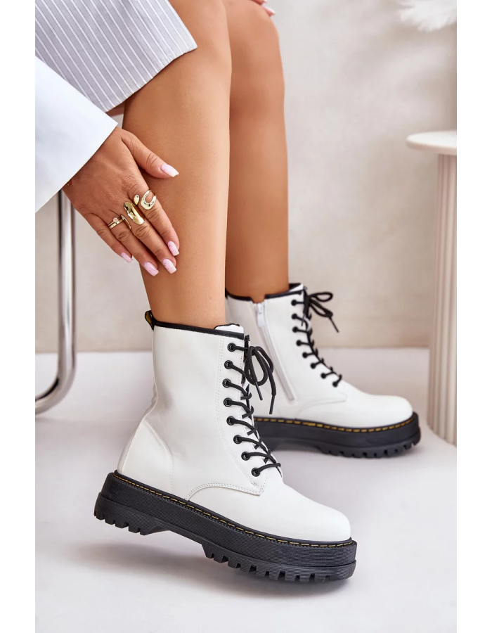 Dámské kotníkové boty vyrobené z eko kůže. Mají zip na boku svršku a šněrování. Vestavěné na platformě. Mají uvnitř zateplení v podobě obuvnické deky. Dodatečně je pata zpevněná. Tyto boty by měly být ve tvé skříni! Při výběru velikosti se prosím řiďte tabulkou velikostí.