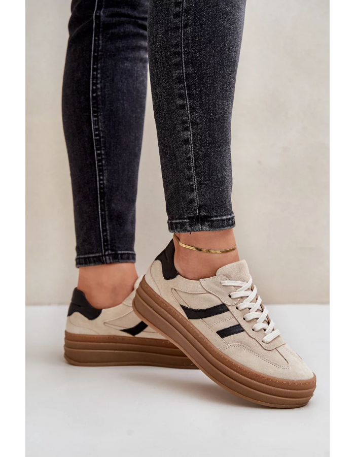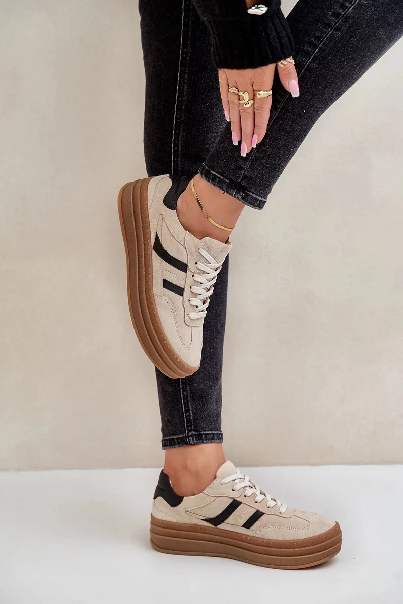 Zabudované na pohodlné platformě, přidávají několik centimetrů výšky, zároveň zajišťují stabilitu. Zaoblené špičky jim dodávají klasický charakter, který se skvěle hodí jak k ležérním, tak k elegantnějším kombinacím. Ideální k džínům, šatům nebo sukním, tyto módní tenisky představují spojení pohodlí s aktuálními trendy.