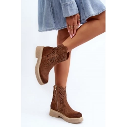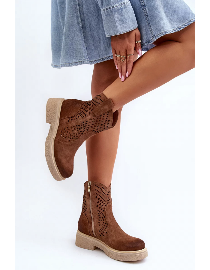 Módní a pohodlné kotníkové boty jsou skvělou volbou pro každou příležitost. Vyrobeno z přírodního semiše. Prolamovaný svršek dodává eleganci a lehkost a zdůrazňuje originální styl. Díky zipu se snadno nazouvají a přizpůsobují noze. Zaoblené nosní vycpávky zajišťují pohodlí při používání. Tyto boty budou dokonalým doplňkem různých stylů! Při výběru velikosti se řiďte tabulkou velikostí.
