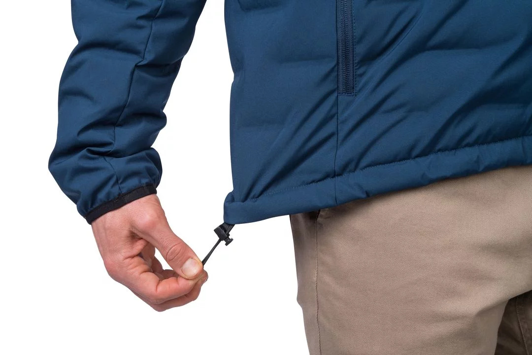 Zazu je péřová teplá městská bunda, jejíž alternativní vzhled přítomnost peří úspěšně zapírá. Díky speciální sendvičové konstrukci, kdy je peří uzavřeno mezi dvě vrstvy membrány jsme maximálně eliminovali unikání peří. Jednotlivé komory jsou odděleny asymetricky pomocí lepení. Použité peří má plnivost 550 cuin při poměru 90/10. Peří má certifikát původu RDS, který zavazuje výrobce ke zpracování peří z chovů v důstojných podmínkách. Pomocí stahování lze regulovat obvod dolního lemu bundy. Rukávy a kapuce jsou zakončeny pružnými lemovkami. Bunda má 2 vnější a 1 vnitřní kapsu na zip.