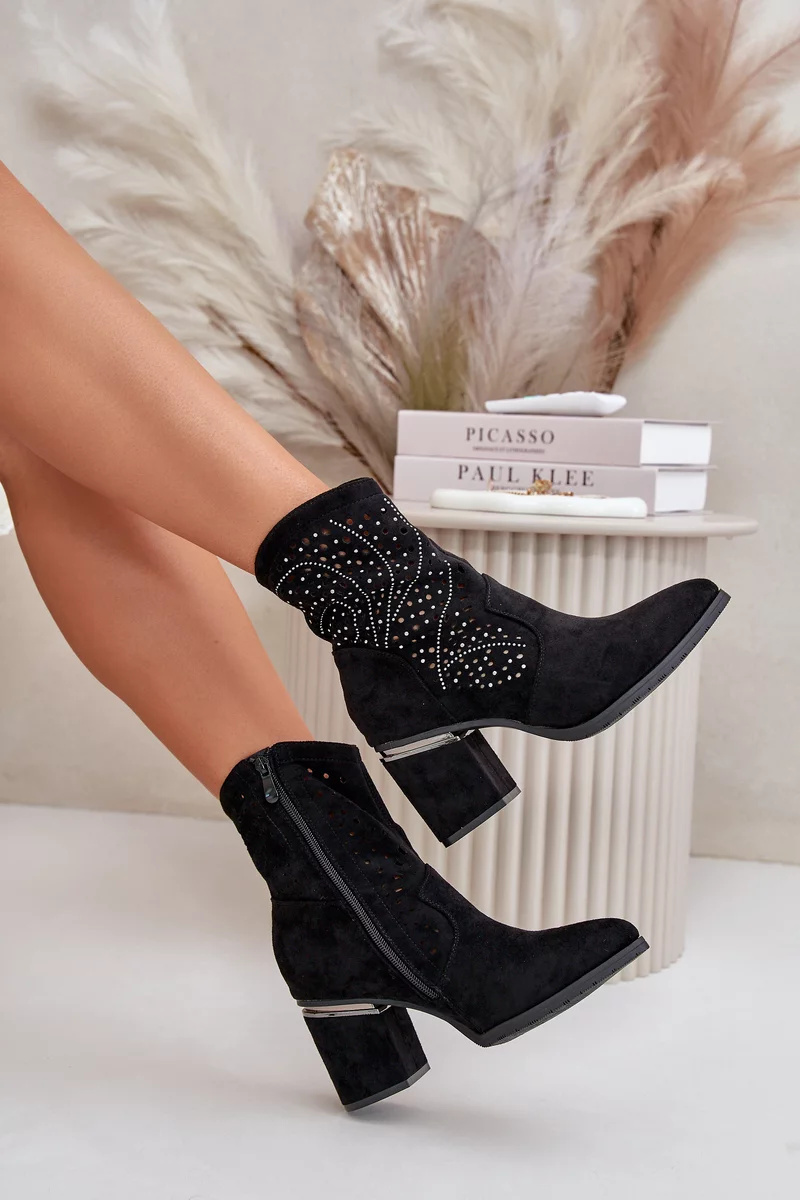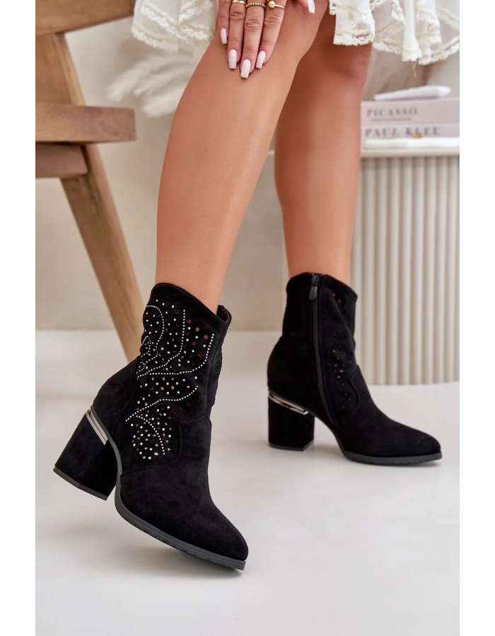 Elegantní dámské kotníkové boty s průřezy vyrobené z vysoce kvalitního eko semiše.