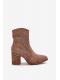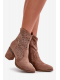 Zdobené Ažurové Kotníkové Boty Dámské Na Podpatku Z Eko Semiše Hnědé S.Barski Velikost: 40