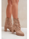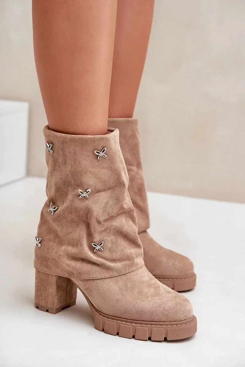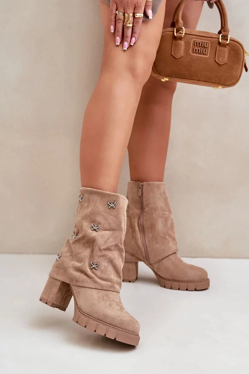 Model se vyznačuje zdobeným, ohrnutým svrškem, který přechází na stabilní sloupcový podpatek, což jim dodává eleganci a moderní styl. Zapínané na zip, s vyhřívaným vnitřkem, zajišťují pohodlí a teplo. Skvělá volba pro stylizaci na podzimní a zimní sezónu.