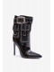 Model zapínaný na zámek, s podšívkou zajišťující pohodlí během chladnějších dnů. Špičaté špičky dodávají eleganci a ozdobný pásek s velkou stříbrnou sponou vytváří výrazný a módní akcent. Ideální pro večerní a elegantní stylizace, tyto kotníkové boty spojují pohodlí a originální design.