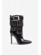 Výjimečné kotníkové boty na jehlovém podpatku vyrobené z lakované eko kůže, které přitahují pozornost elegantním a efektním stylem.