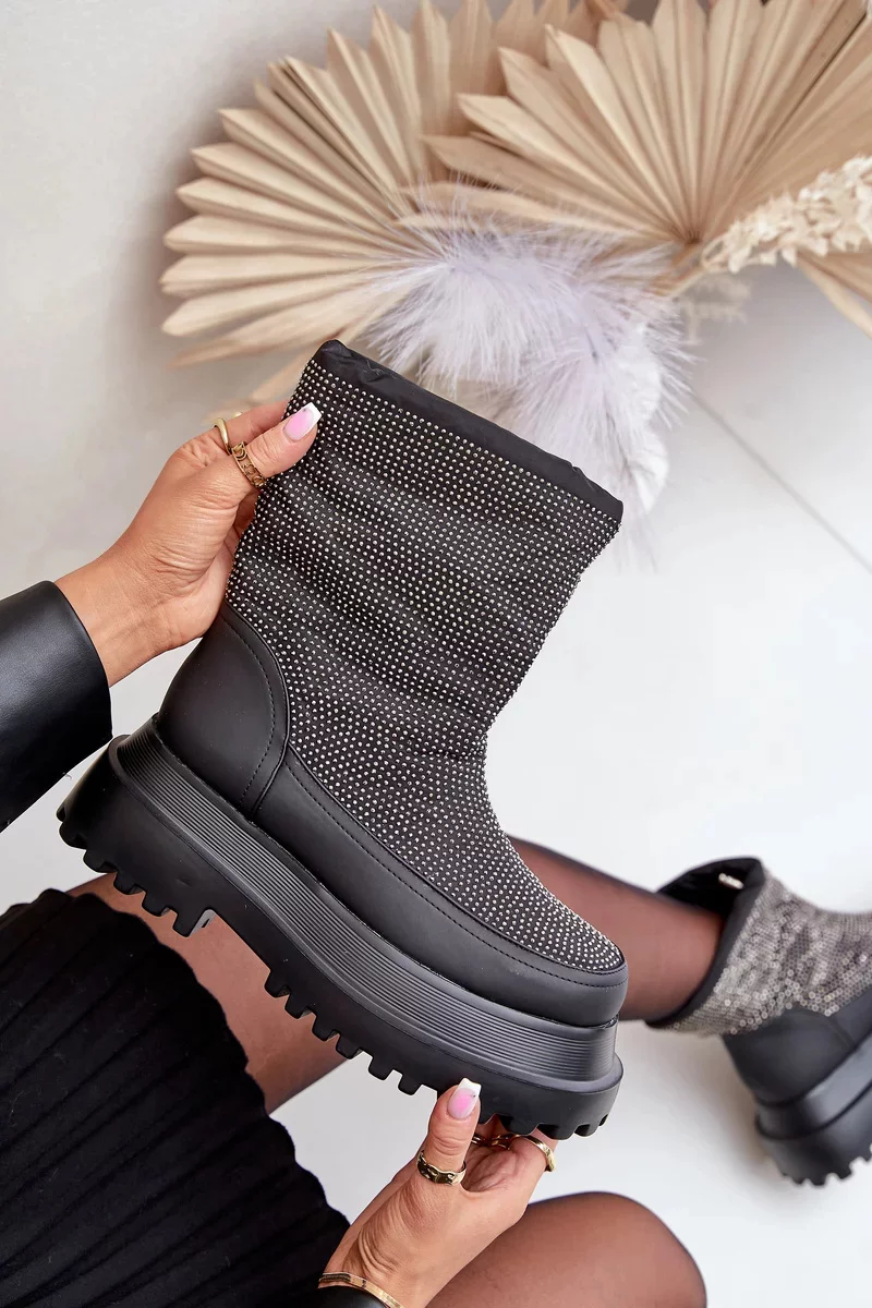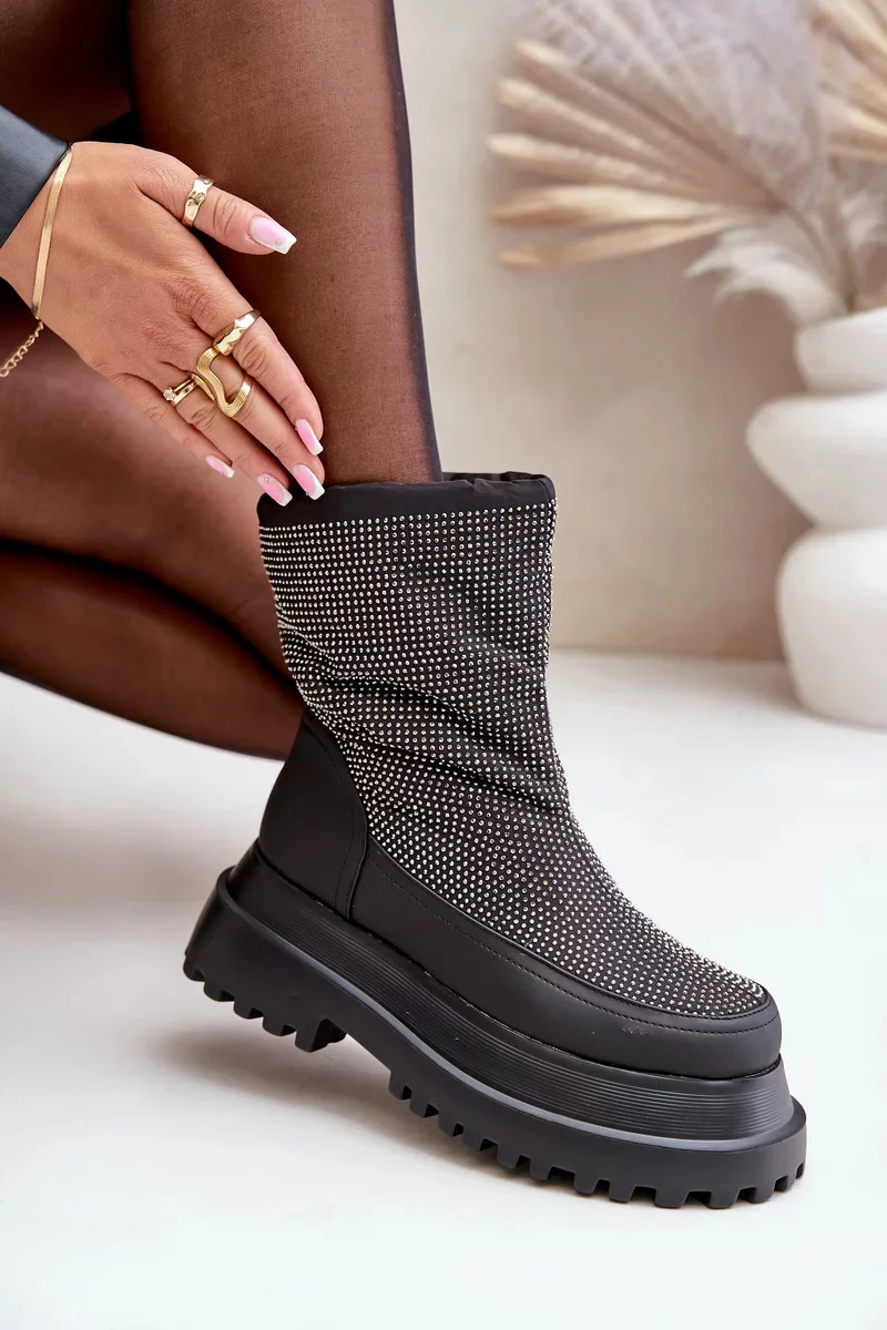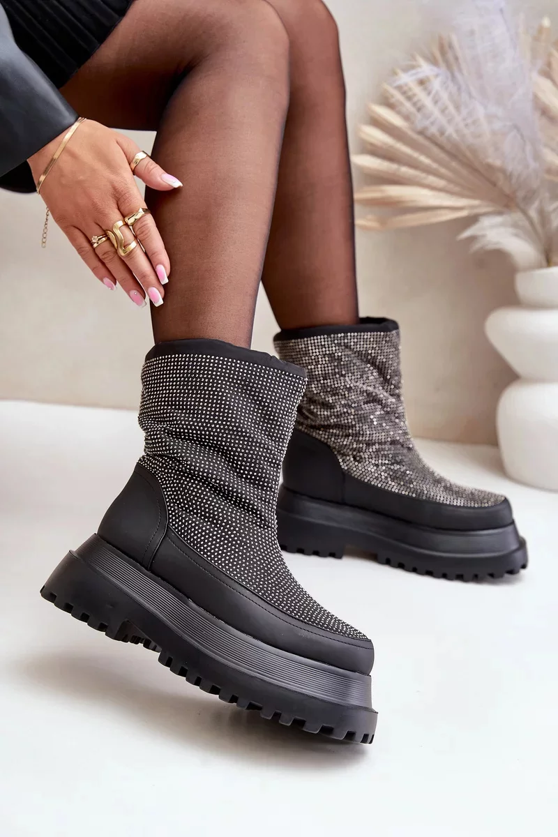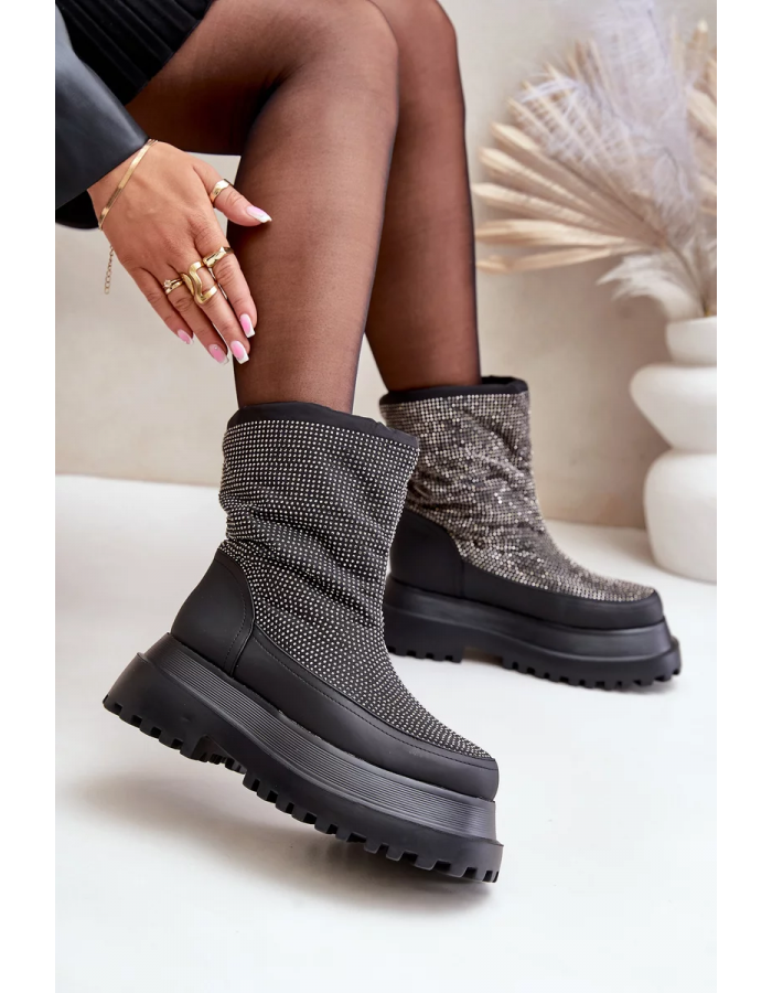Zabudované na platformě s plochým podpatkem, poskytují stabilitu a pohodlí při chůzi po zasněžených površích. Lesklý svršek s dekorativními detaily jim dodává módní, poutavý charakter. Horní část svršku byla zakončena praktickým lemem, který účinně chrání před větrem a sněhem, zajišťuje dodatečné teplo. Tyto stylové sněhule dokonale spojují funkčnost s módním vzhledem, osvědčují se jak v městských outfitech, tak při zimních procházkách.