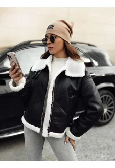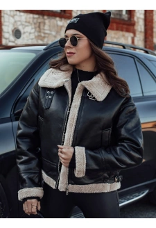 Dámská bunda SHEREB kožená s kožíškem černá Dstreet TY4756