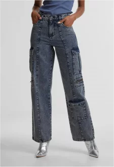 Dámské džíny High Waist Straight Denim Cargo - modré
