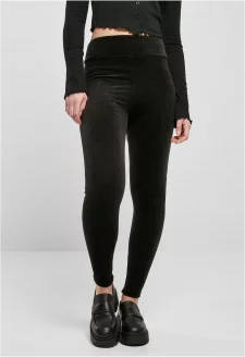 Dámské sametové legíny šedozelené barvy s vysokým pasem