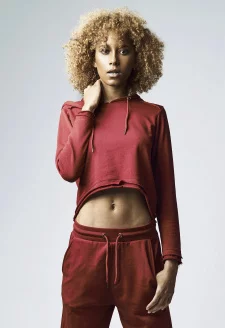Dámská měkká taupe s kapucí s kapucí oříznutá Velvet Oversized
