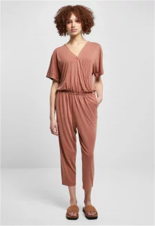 Dámská terakotová modální kombinéza s dlouhým rukávem