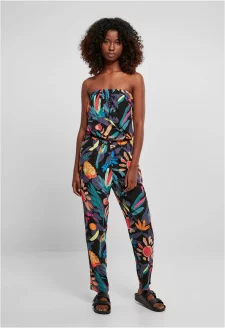 Dámská kombinéza s krátkým viskózovým páskem v tropické černé barvě
