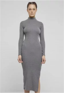 Dámské tmavé khaki šaty se žebrovaným vzorem na jedno rameno