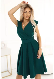 348-11 SCARLETT - rozkloszowana sukienka z kopertowym dekoltem - ZIELONA