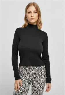 Dámská síťovina s dlouhým rukávem s odkrytým švem, černá