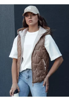Dámská vesta LEOVELLA přechodová krátká prošívaná oboustranná kávová Dstreet TY4648