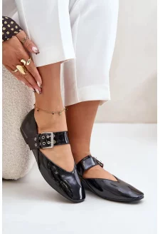Lakované Baleríny S Pásky Na Nízkém Podpatku Černé Bialettia