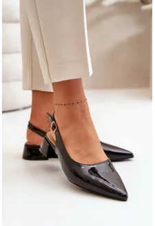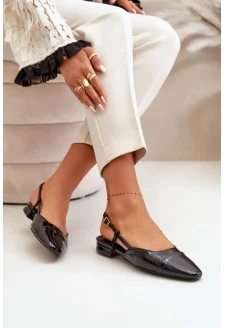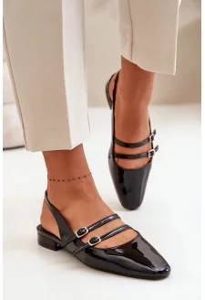 Lakované baleríny na nízkém podpatku s otevřenou patou černé Kairael