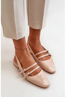 Lakované Baleríny S Pásky Na Nízkém Podpatku Béžové Bialettia