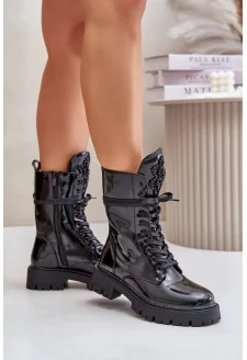 Lakované kotníkové boty na klínku zateplené Vinceza černé