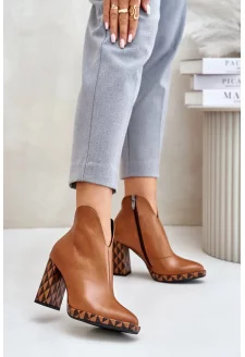 Dámské kožené botky Artiker – hnědé, s efektem mačkání a s přezkou