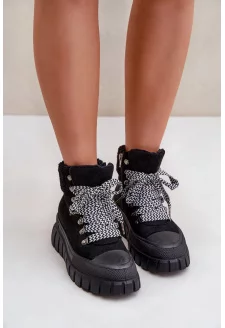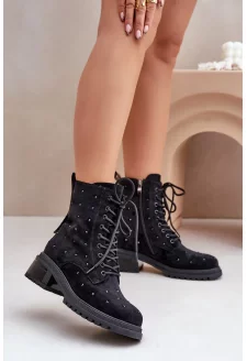 Dámské šněrovací kotníkové botky s perforovaným vzorem – černé S.Barski