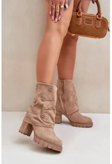 Dámské boty Jezzi – zateplené s dekorativními květinami, béžové