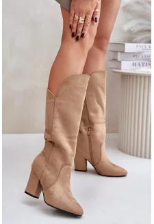Dámské kozačky s vyvýšenou manžetou Vinceza 16516 – béžové