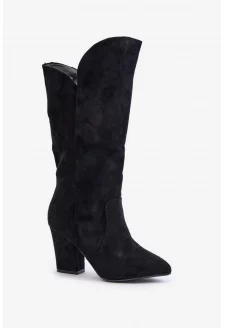 Dámské zateplené kozačky s vyhrnutou špičkou na sloupkovém podpatku Elivira – černé