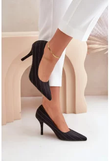 Dámské Látkové Lodičky s Pruhy Černé Tifidra