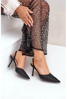 Lodičky na podpatku s otevřenou patou a zdobením Nanadra – černé