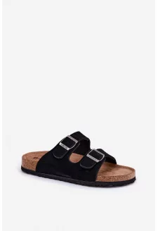 Dámské Pantofle S Přezkami A Kožešinou Černé Ezilena