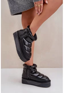 Nízké dámské sněhule na platformě zateplené kožíškem černé Saldren