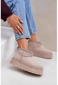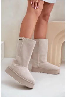 Dámské Semišové Sněhule Na Platformě Nad Kotníky Béžové Rianaella
