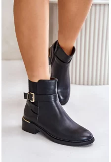 Zateplené Kozačky Na Ploché Podpatku S Ozdobnou Přezkou Černé Leatharia