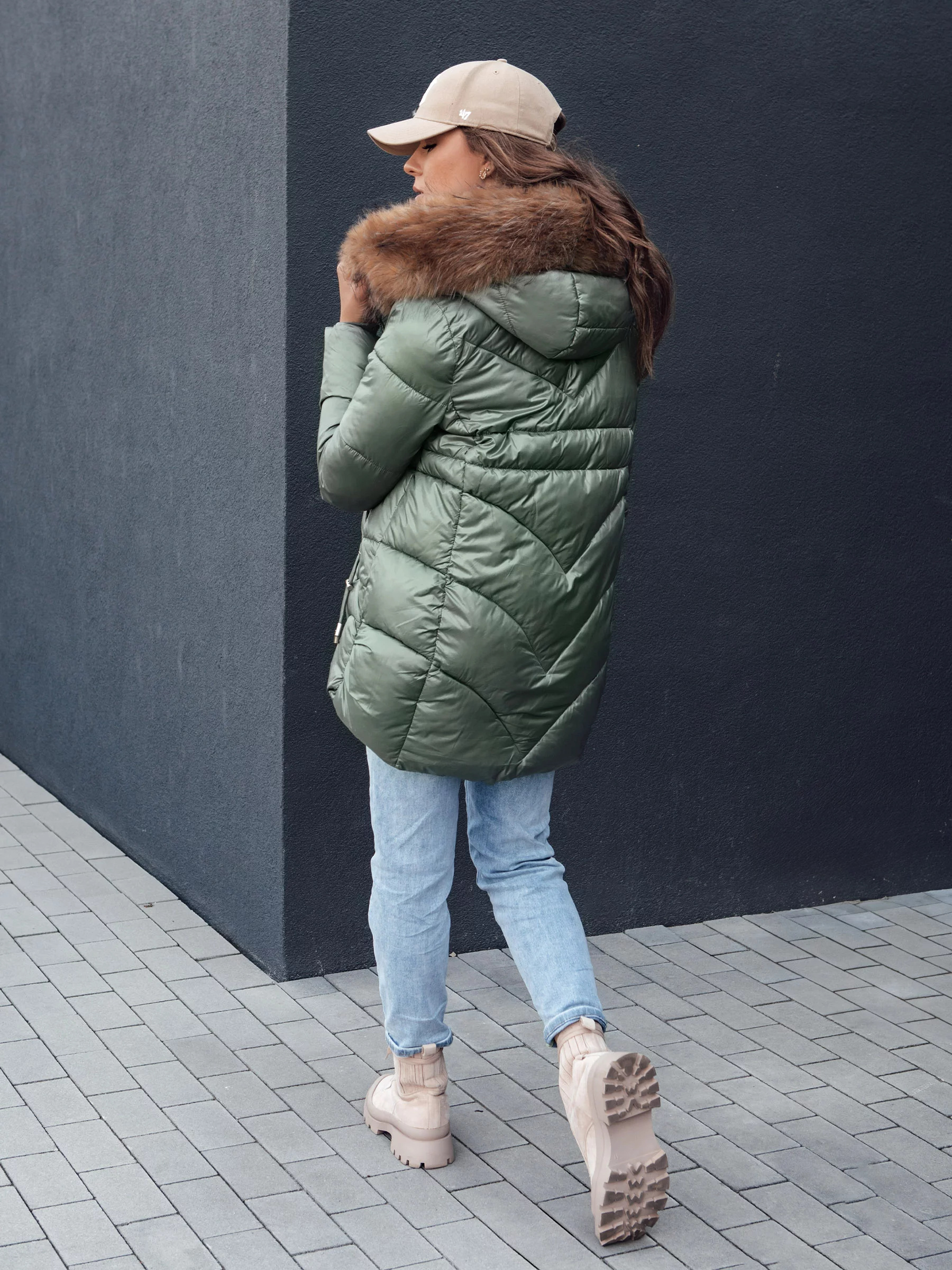 Naše bunda je kombinací módy a praktičnosti. Díky zapínání na zip je její oblékání a svlékání rychlé a snadné. Odepínací kapuce s kožešinou dodává eleganci a zároveň umožňuje přizpůsobení bundy počasí. Dvě vnější kapsy jsou ideální pro uložení nejpotřebnějších věcí a stahovací šňůrky na spodním lemu a rukávech účinně chrání před větrem, zajišťují teplo. To je ideální bunda na každodenní výlety, které vyžadují stylový vzhled a spolehlivou ochranu před chladem.