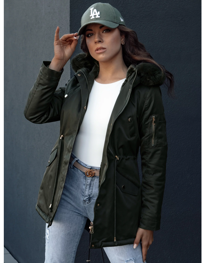 Zimní dámská parka s kožešinou ERISS zelená Dstreet TY4534 Velikost: S