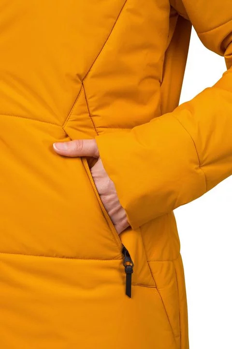 Zimní stylový kabát v prodlouženém střihu je skvělou volbou do města nebo pro volný čas. Odolnost proti dešti, mokrému sněhu i větru zajišťuje membrána Resstex 5000 s DWR úpravou. Kvalitní polyesterové rouno Duratherm High Loft je lehké, nadýchané, měkké a vyniká svými termoizolačními vlastnostmi. Kabát má zateplený límec s kapucí se stahováním, dvě zateplené hlavní kapsy na zip, jednu vnitřní kapsu na zip a hlavní zip krytý légou. Dekorativním i funkčním prvkem jsou boční rozparky na patenty. Rukávy jsou zakončeny vnitřní elastickou manžetou, která zamezuje úniku chladu.