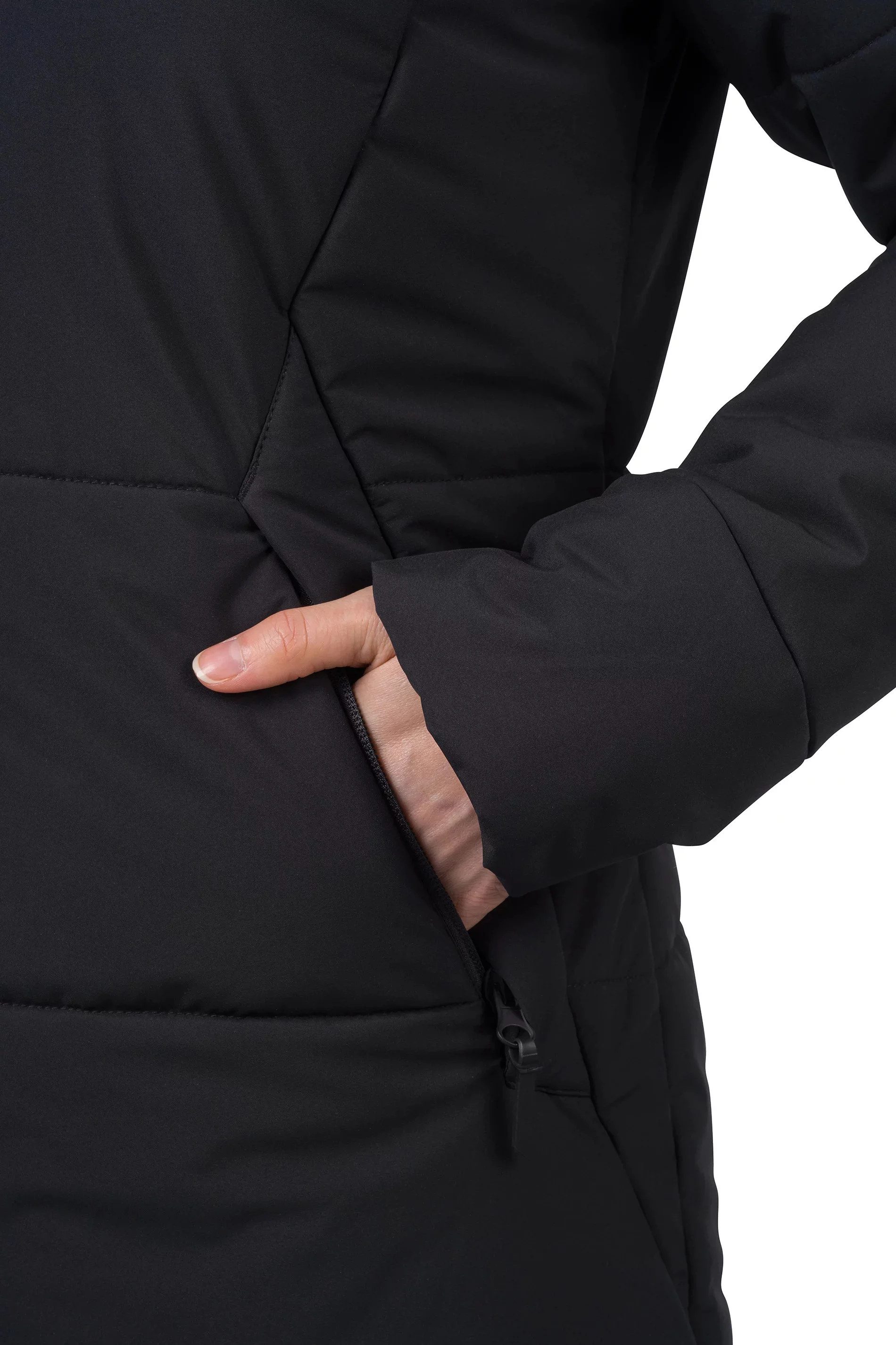 Zimní stylový kabát v prodlouženém střihu je skvělou volbou do města nebo pro volný čas. Odolnost proti dešti, mokrému sněhu i větru zajišťuje membrána Resstex 5000 s DWR úpravou. Kvalitní polyesterové rouno Duratherm High Loft je lehké, nadýchané, měkké a vyniká svými termoizolačními vlastnostmi. Kabát má zateplený límec s kapucí se stahováním, dvě zateplené hlavní kapsy na zip, jednu vnitřní kapsu na zip a hlavní zip krytý légou. Dekorativním i funkčním prvkem jsou boční rozparky na patenty. Rukávy jsou zakončeny vnitřní elastickou manžetou, která zamezuje úniku chladu.
