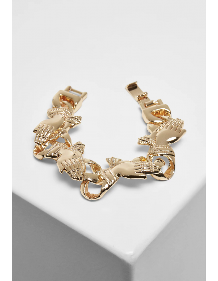 Tento náramek Urban Classics skutečně upoutá pozornost. Díky velkým řetězovým článkům jistě upoutá pozornost, protože články jsou ve tvaru modlících se rukou. Nápadný náramek je vyroben ze stabilní slitiny a zapíná se na přezku.