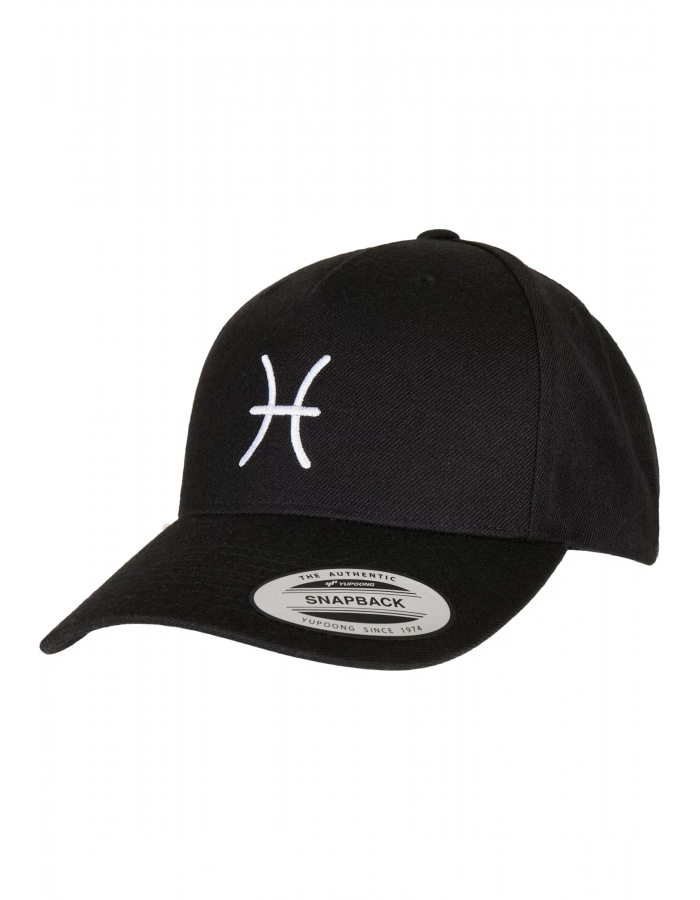 Tato prémiová kšiltovka s 5 panely je stejně inovativní a moderní a přesvědčí harmonickým a osobním designem. Na předním panelu je vyšívaný symbol zvoleného zvěrokruhu, na zadní straně je název zvěrokruhu zobrazen jako výšivka. Čepice je jednobarevná a nabízí zakřivený hledí. Jako univerzální velikost je individuálně nastavitelná pomocí zapínání snapback na zadní straně. Je vyrobena z akrylu a vlny.